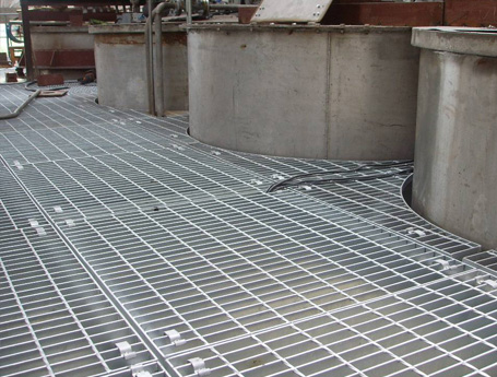 污水廠用鋼格板   污水處理廠用鋼格柵其特點(diǎn)為:   1、強(qiáng)度高:牢固的網(wǎng)格壓焊結(jié)構(gòu)使其具有高承載;   2、結(jié)構(gòu)輕:便于吊裝等特點(diǎn);   3、外形美觀,經(jīng)久耐用:熱浸鋅表面處理使其具有相當(dāng)好的防腐能力,表面光澤美觀; ···